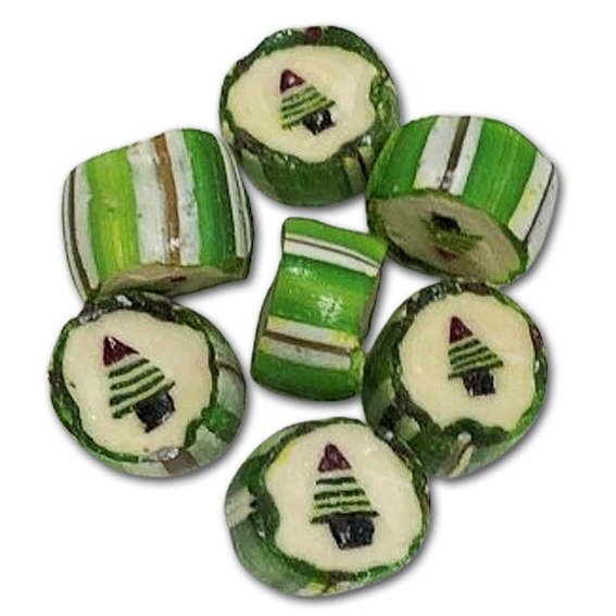 Søde bolsjer med juletræer og med en helt fantastisk smag af skovbær