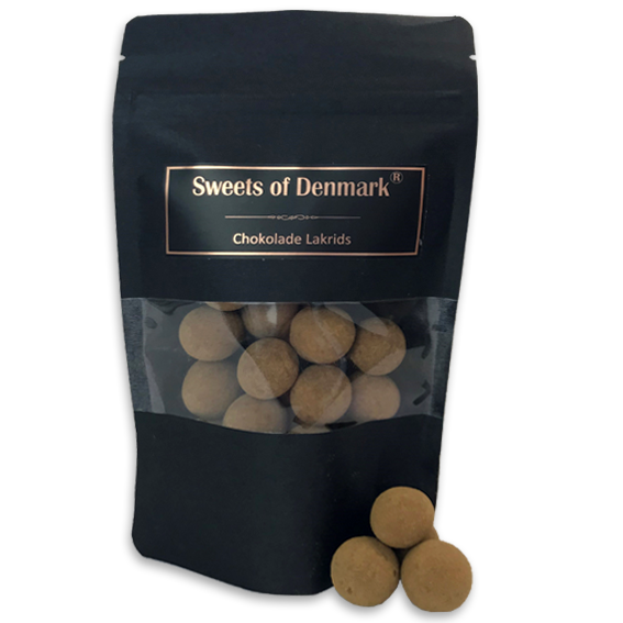 Lakridskugler med chokoladeovertræk med karamelsmag og rullet i lakridspulver. En overraskende lækker sammensætning, som er fuldstændig uimodståelig.