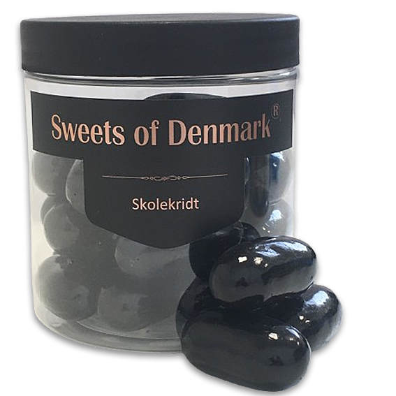 Den velkendte "skolekridt" her overtrukket med hvid og lys chokolade med lækker smag af karamel