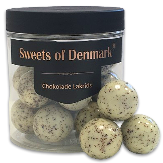 En virkelig skøn kombination af sød lakrids overtrukket af hvid chokolade og mælkechokolade og med lækker karamelsmag