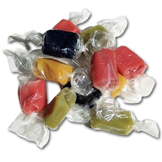 En skøn blanding af en masse forskellige frugt karameller. De er helt uimodståelige og perfekte at putte i slikskålen