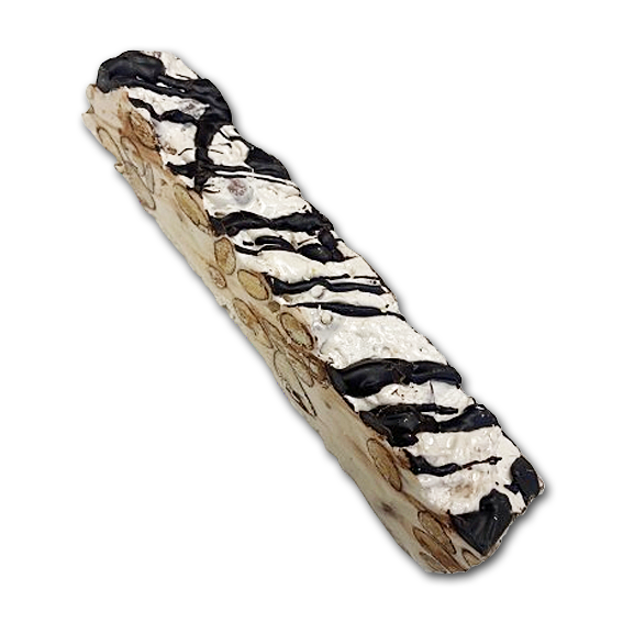 Fransk nougat med mandler og chokolade er en luksuriøs delikatesse, der kombinerer den klassiske, cremede nougats konsistens med sprøde ristede mandler og et strejf af rig chokolade. Denne håndlavede nougat smelter på tungen og byder på en perfekt balance mellem sødme, knas og intens kakaosmag. Perfekt som en elegant gave, til kaffen eller som en eksklusiv snack, når du vil forkæle dig selv med noget helt særligt.
