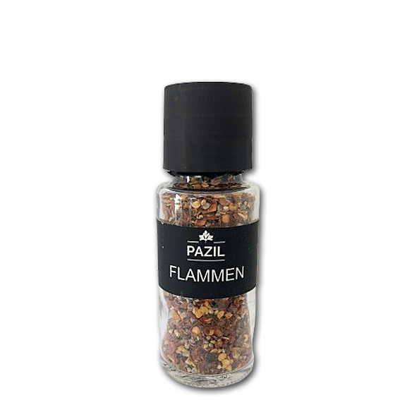 Flammen er en rigtig god saltblanding med dejlig stærk smag af chili i en dejlig krydderiflaske med kværn. Brug den til at krydre dit kød eller til kolde grillsaucer og dip