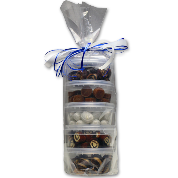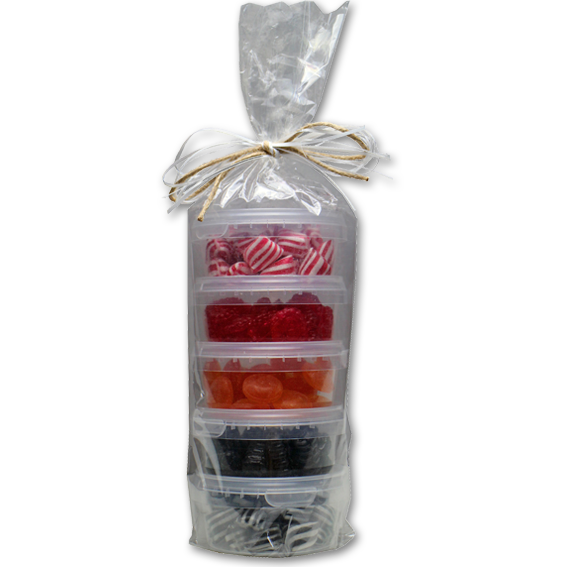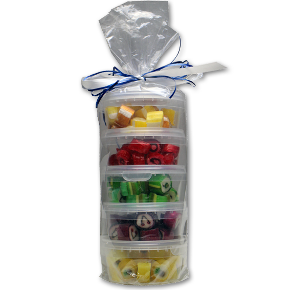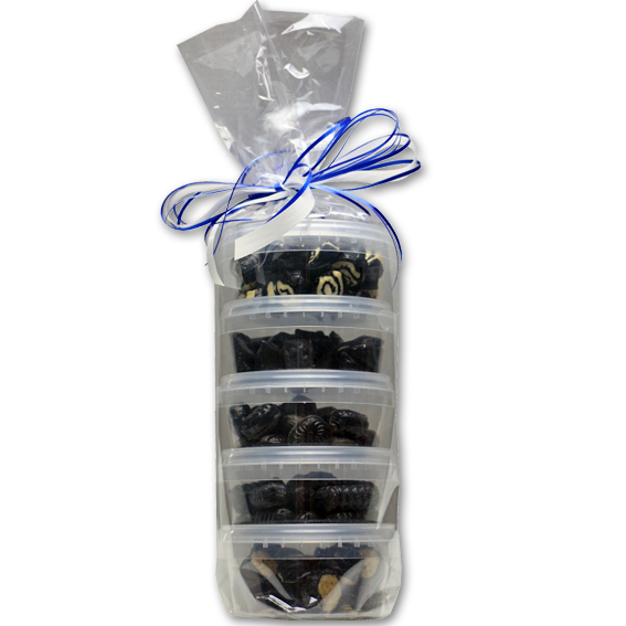 En sød lille gave med 5 x 90-100 g af de lækre, hjemmelavede kvalitetsbolsjer fra Svanenet, pakket ind i cellofan.
