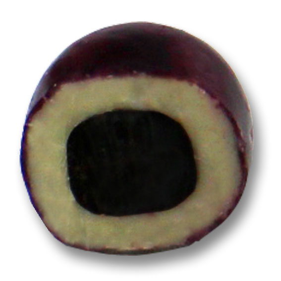 Sød, mild lakrids overtrukket med hvid chokolade og blåbærdragee