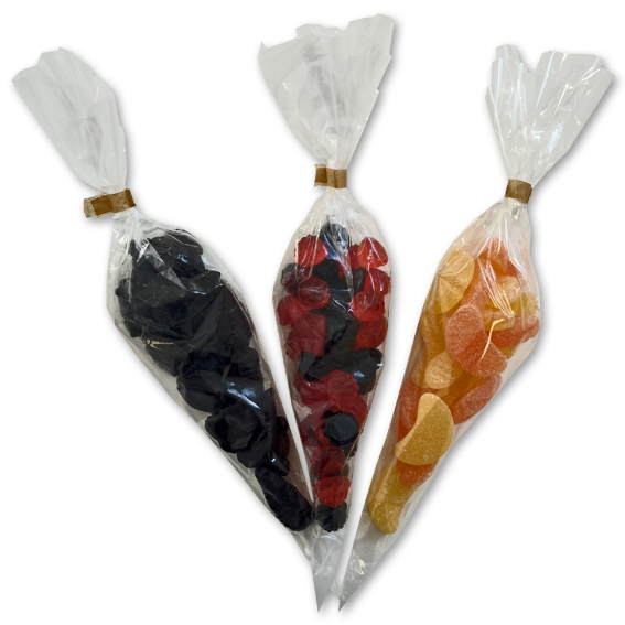 Frit valg 3 spidsposer med sukkerfri slik, 100 g i hver