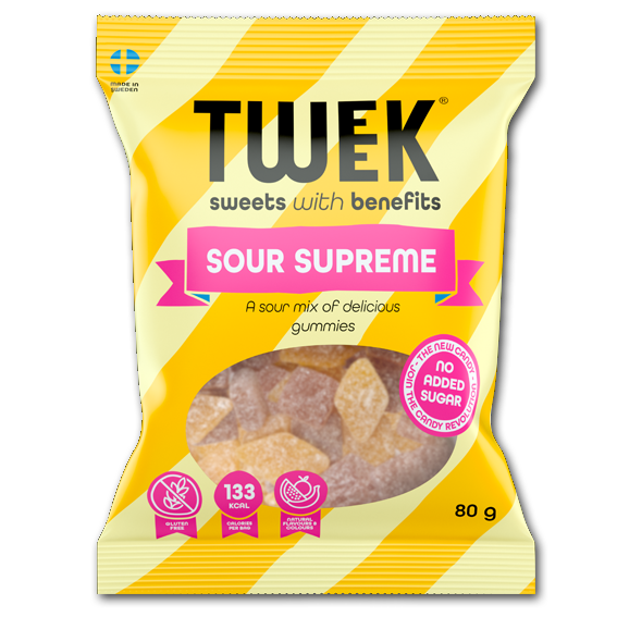 Sour Supreme er den perfekte snack til dig, der elsker intens syrlighed og blød konsistens – helt uden tilsat sukker. Disse lækre vingummier kombinerer frugtige smagsnuancer med en frisk syrlig kant, og er samtidig fyldt med fibre, hvilket gør dem til et smartere valg, når den søde tand melder sig.