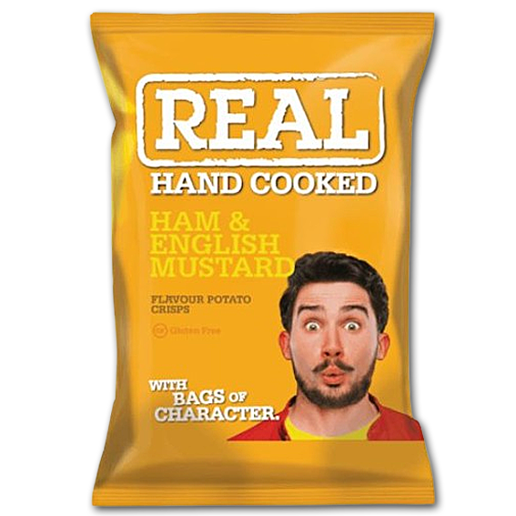 Håndlavede kartoffelchips med smag af skinke og engelsk sennep. En perfekt kombination af smag