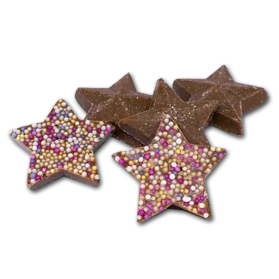 Mælkechokolade stjerner med krymmel er den perfekte kombination af lækker, blød chokolade og farverig festlighed. Hver stjerne er støbt i cremet mælkechokolade og toppet med et sprødt lag farverig krymmel, der både tilføjer knas og et legende udtryk. De små stjerner er ideelle som pynt til kager, til slikskålen eller som en sød gaveidé, der spreder glæde hos både børn og voksne.