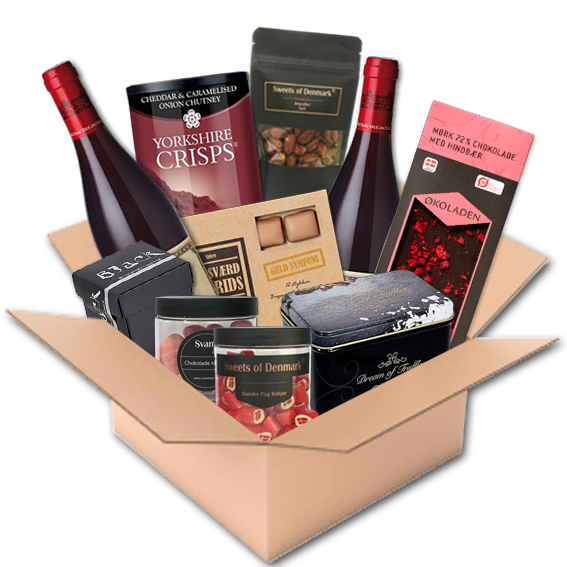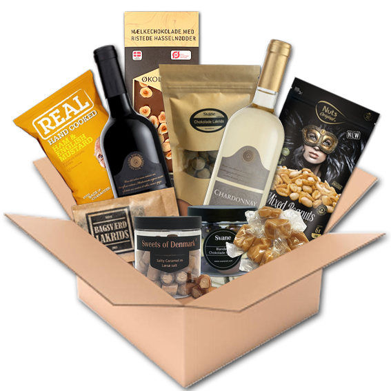 Udover vinen indeholder kassen en blanding af lækre og sprøde snacks, såsom salte nødder og delikate chips. Der er også en række skønne, søde godbidder, for eksempel chokolade, bolsjer, lakrids og karameller, der vil tilfredsstille enhver sød tand.