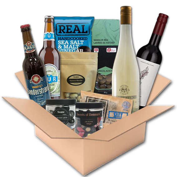 Vælg mellem vores to kasser - en til 350 kr, med et indhold til en værdi af minimum 420 kr, eller en kasse til 500 kr, med et indhold til en værdi af minimum 600 kr.