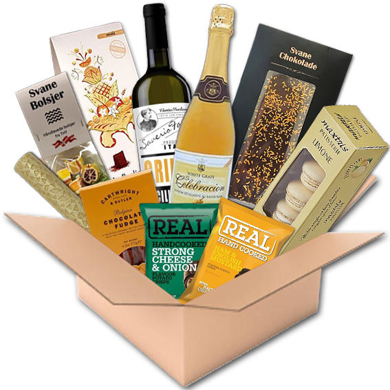 Begge kasser indeholder en flaske frisk hvidvin samt en flaske af den populære alkoholfri “Le Celebracion White Grape”. Den store kasse rummer desuden også en flaske “Le Celebracion Red Grape”.