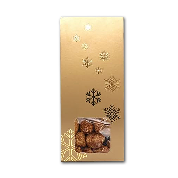 Brændte mandler i gavepose er den perfekte juleforkælelse, der kombinerer klassisk smag med smuk indpakning. De sprøde mandler er omhyggeligt karamelliseret i sukker, så de får den velkendte søde og knasende overflade, der vækker ægte julestemning. Den dekorative gavepose gør det nemt at give dem som en hyggelig værtindegave, lækker julehilsen til kolleger eller som en sød overraskelse under træet.