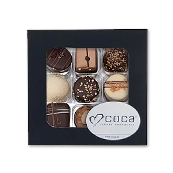 En fin lille æske med ni stykker superlækker fyldt luksuschokolade.
