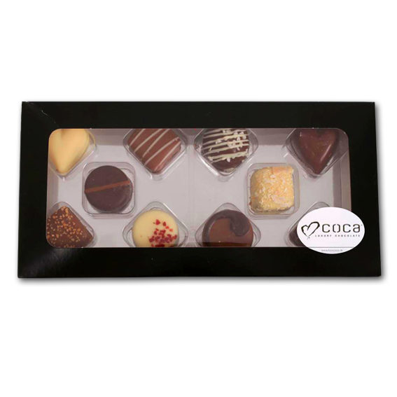 Fin æske med 10 stk. lækker fyldt chokolade