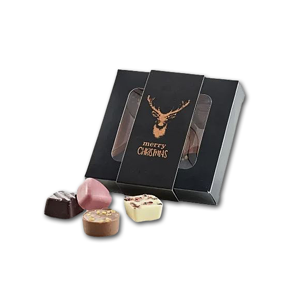 Denne eksklusive juleæske med 5 fyldte chokolader er ideel som en lille opmærksomhed til kollegaer, venner eller familie. Den er også perfekt som værtsgave til julefrokosten eller som en del af en større gavekurv.