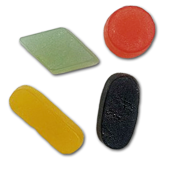 | Ingredienser | Sødemiddel (maltitol), vand, stivelse, gelatine, syre E330, aromaer, farve: E120, E141 E161b, E153, overfladebehandlingsmiddel (E903) |
