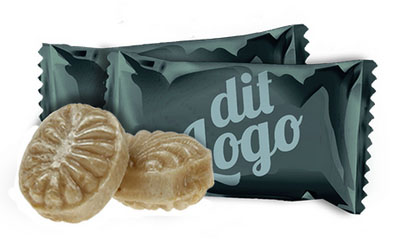 Her kan du vælge at få de velsmagende bolsjer fra Svanenet pakket ind i folie med eget logo.