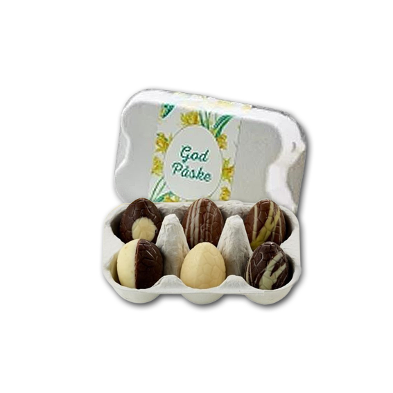 En lille fin æggebakke med seks lækre luksus fyldte chokoladeæg
