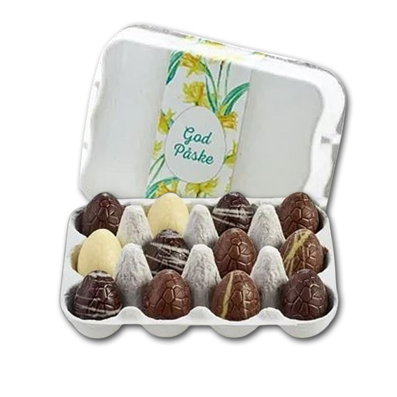 Forkæl dine smagsløg med 12 luksus fyldte chokoladeæg, skabt til den sande chokoladeelsker. Perfekte til påske, gaver eller som en særlig selvforkælelse, disse lækre chokoladeæg imponerer både i udseende og smag. De er pakket i den sødeste æggebakke lige til at forære væk.