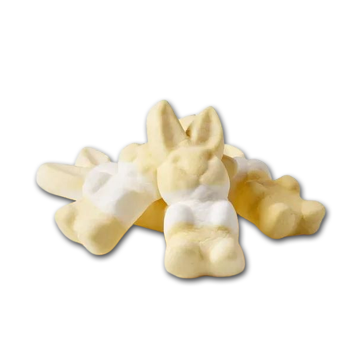 Til påskens slikskål skal der selvfølgelig være skumslik. De lækre skumfiduser er formet som påskeharer og har en dejlig sød smag
