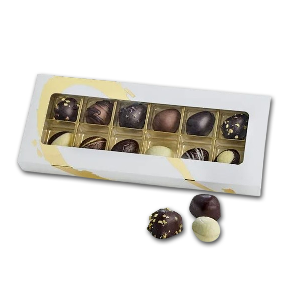 Gør påsken ekstra lækker med denne smukt sammensatte æske, der indeholder 6 marcipanpåskeæg og 6 luksuriøse chokoladeæg. Perfekt som en sød gave eller som en del af påskebordets delikatesser.