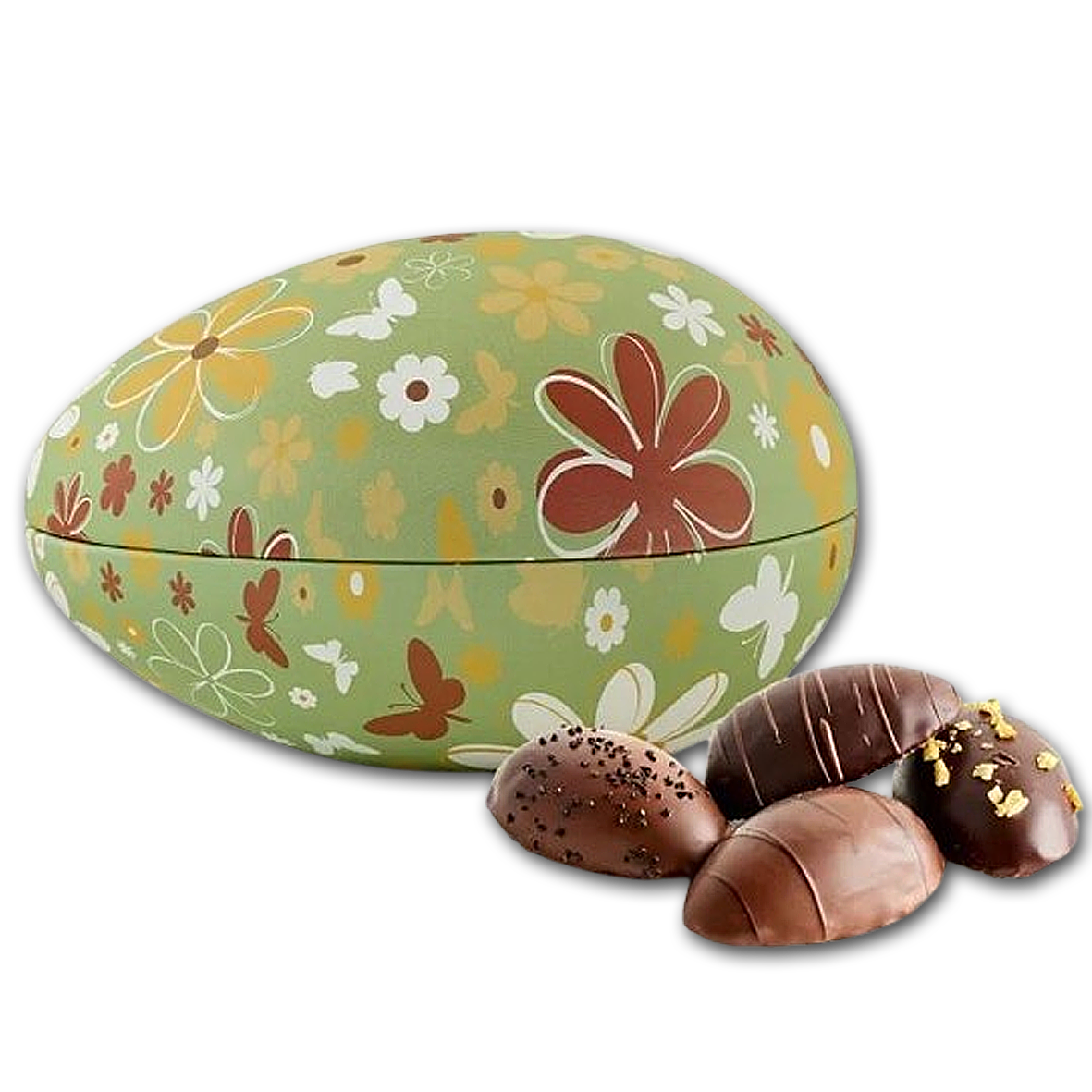 Metal påskeæg med blomstermotiv fyldt med de lækreste store marcipanæg. Vælg et påskeæg, der både imponerer visuelt og smager himmelsk – et metal påskeæg fyldt med lækkerier