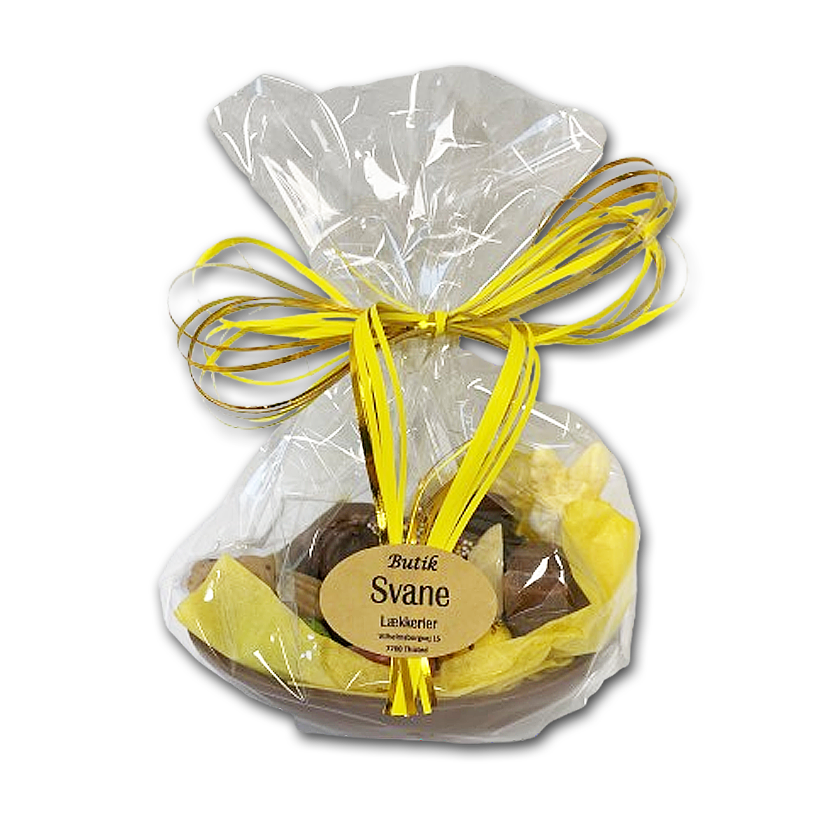 Det er flot pakket ind i cellofan. Så her får du et lækkert påskeæg til børn og barnlige sjæle.