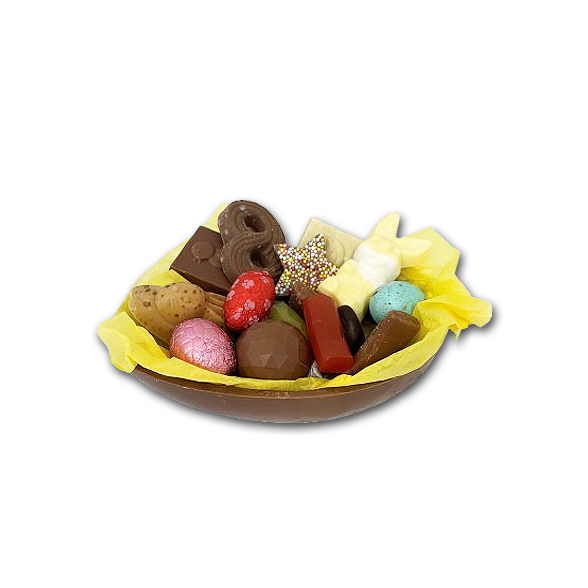 Denne håndlavede chokolade påske skal af mælkechokolade er en festlig og velsmagende påskegave, der vækker glæde hos alle børn. Skallen er lavet af cremet mælkechokolade i høj kvalitet og er håndlavet i eget chokoladeværksted. Den er fyldt med en blanding af børneslik og chokolade, som gør påskeægget ekstra sjov og spændende.