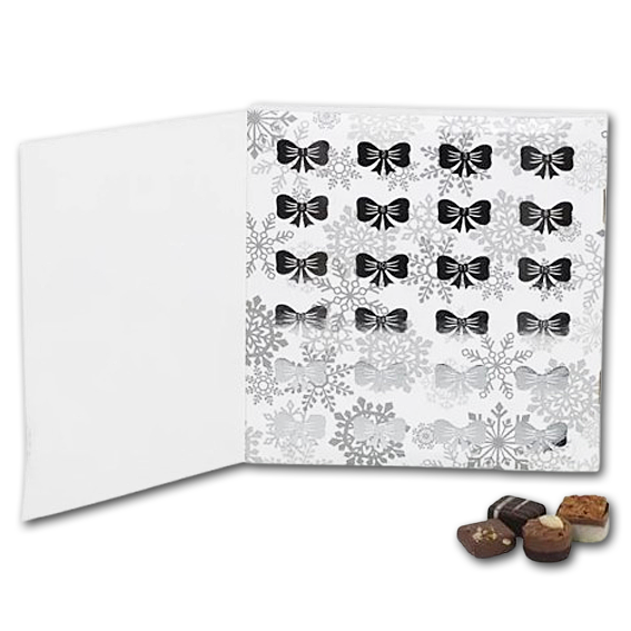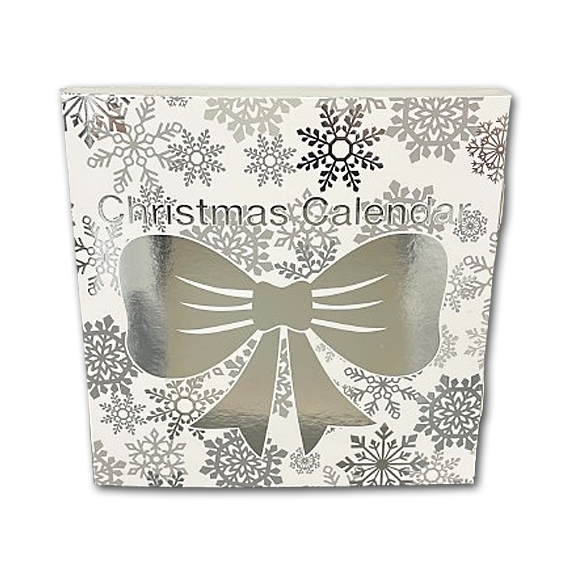 Julekalender i hvid/sølv med fyldt chokolade