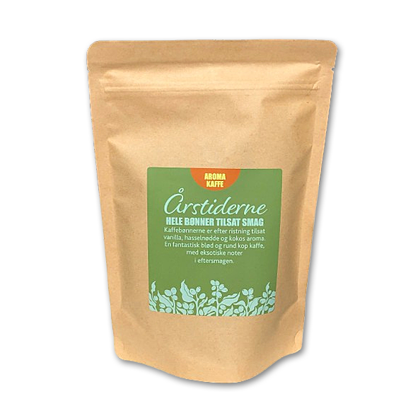 Hele eller malede kaffebønner tilsat vanilje, hasselnød og kokos aroma. Det giver en fantastisk smag og er helt perfekt at drikke sammen med en skål is.