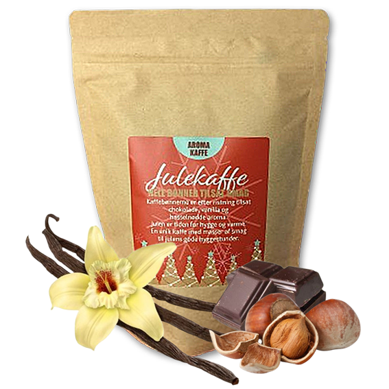 Hele eller malede kaffebønner tilsat chokolade, vanilje og hasselnød aroma. En rigtig dejlig kaffe til julens hyggelige stunder.